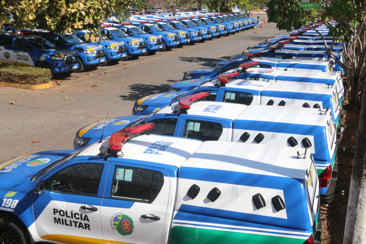 Daniel Vilela destaca padrão de excelência da atuação das forças de segurança durante entrega de veículos ao Comando de Policiamento Rodoviário. (Foto: Jota Eurípedes/Divulgação)