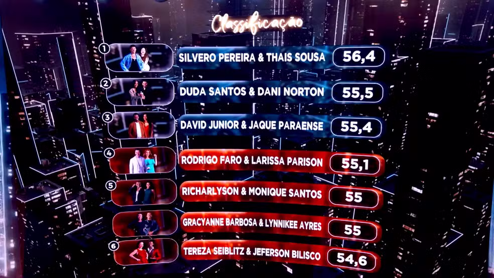 David Junior e Jaque Parae empolgaram ao som de “Bebê, Vem Me Procurar”, de Manutti. A jurada convidada Giovanna Antonelli não escondeu o entusiasmo: “Eu prendi o ar! Quando acabou a dança, eu estava sem respirar, de tão nervosa! Arrasaram! (Nota) 10!”