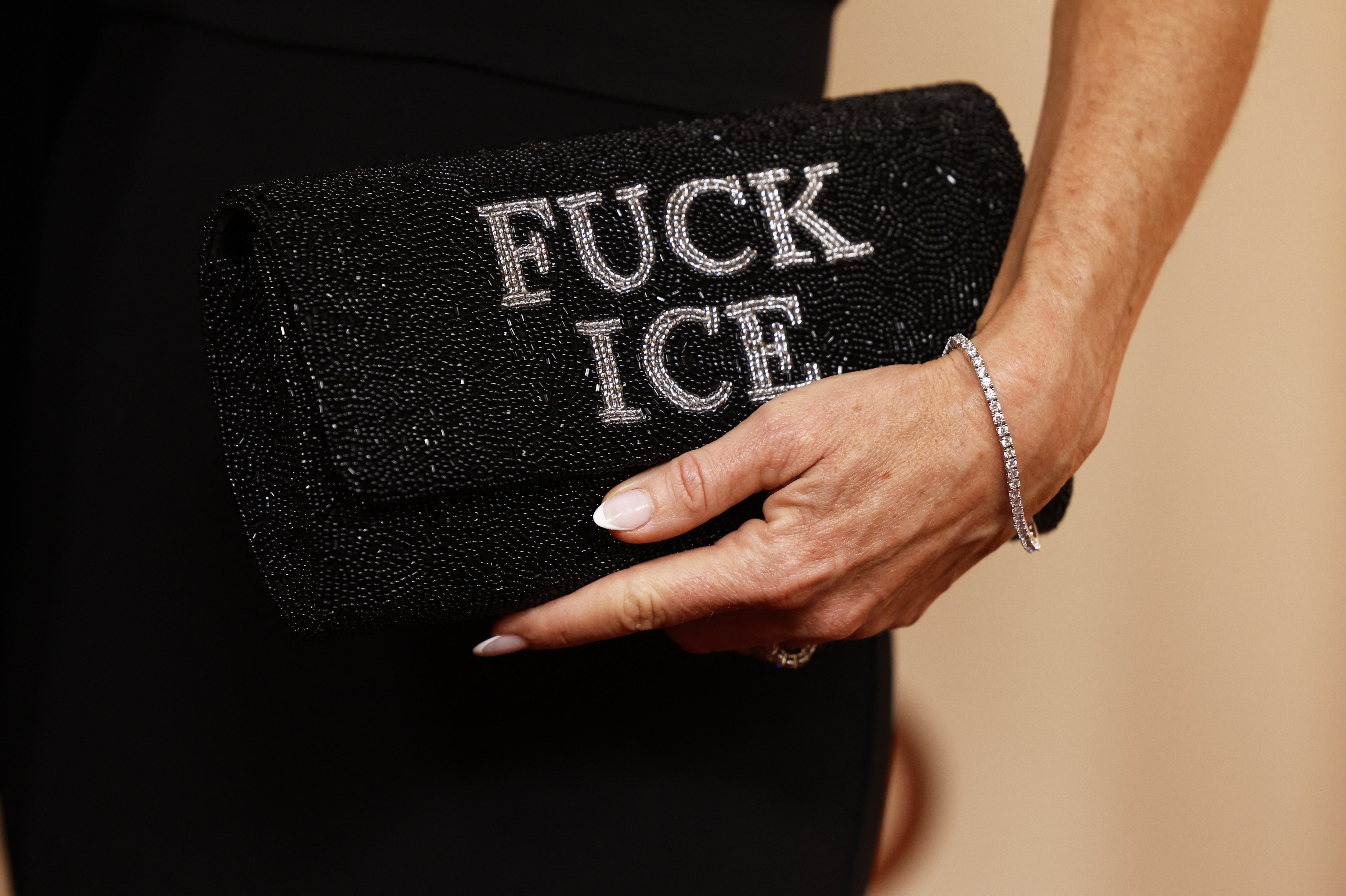 Recentemente, a cerimônia de premiação se transformou em um verdadeiropalco de manifestações. Artistas e celebridades têm usado a moda como uma ferramenta poderosa para expressar mensagens sociais e políticas. Entre os acessórios que ganharam destaque, estão broches e pins que que exigem o fim do Departamento de Imigração e Controle de Alfândega dos Estados Unidos, o ICE, símbolo da dura agenda anti-imigração defendida por Donald Trump.