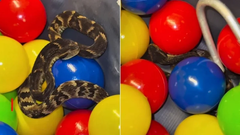 O resgate foi registrado em vídeo pelo veterinário Celso Gatti e acabou viralizando nas redes sociais. Nas imagens, o profissional mostra a movimentação da cobra entre as bolinhas plásticas da brinquedoteca.