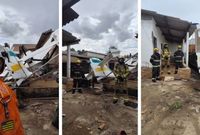 Residência ficou parcialmente destruída; moradores escaparam por pouco do impacto Um avião de pequeno porte caiu sobre uma residência na Rua 24, no Setor Santos