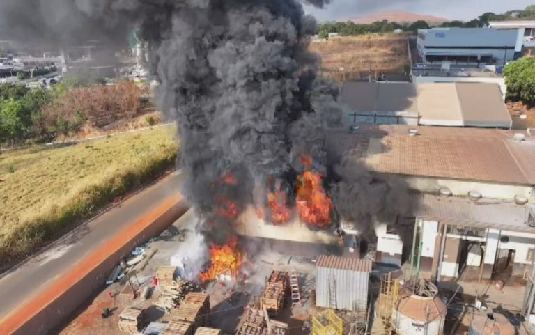 O incêndio começou na manhã desta sexta-feira (12), em torno da GO-070; dois trabalhadores estão com intoxicação leve e seu estado de saúde é bom