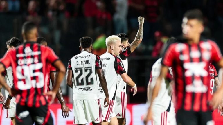 O Flamengo conquistou sua primeira vitória no Campeonato Brasileiro ao bater o Vitória por 2 a 1, na noite desta quarta-feira (10), no Barradão, em