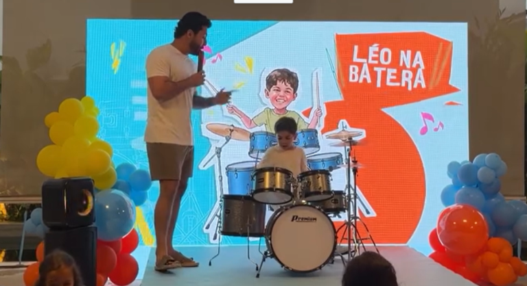 Léo, de 6 anos, realizou sua primeira apresentação musical em casa, acompanhado do pai Murillo Huff Léo, filho da cantora Marília Mendonça e do cantor