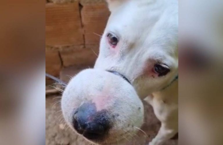 Animal foi encontrado em estado crítico, sem poder se alimentar ou beber água por dias, e busca agora um lar amoroso Uma cadela chamada Branquinha