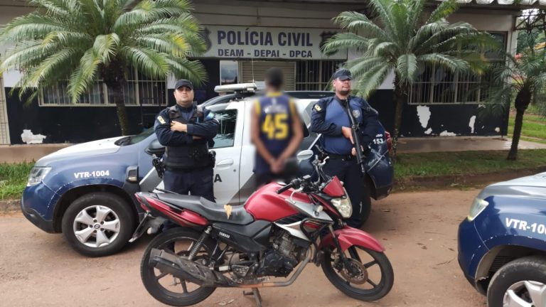 Motocicleta foi localizada durante patrulhamento no Residencial Flor do Ipê; homem foi detido e encaminhado à delegacia Durante patrulhamento na manhã desta segunda-feira (03), agentes