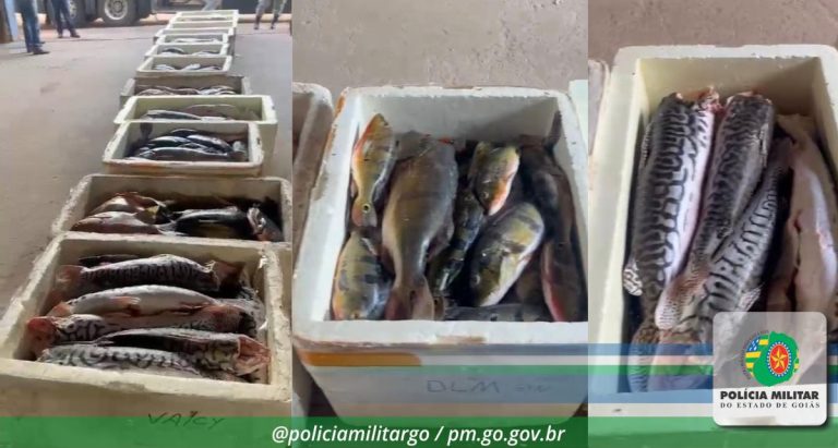 Policia Militar de Goiás, por meio do 2ºBPMRv apreendeu nesta quarta-feira, 25/10, cerca de uma tonelada de pescado ilegal em ônibus que fazia a rota