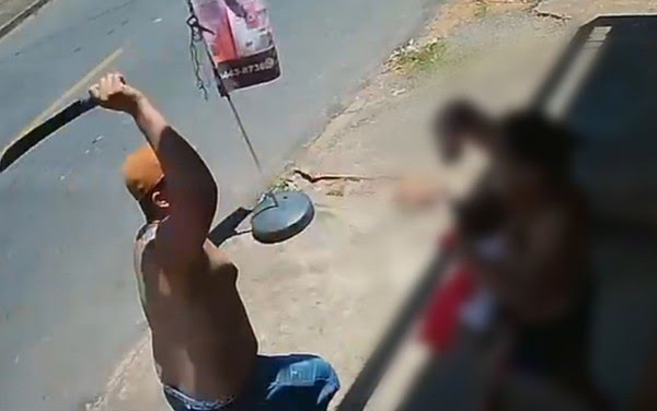 Ataque brutal foi registrado por câmera de segurança; agressor, de 35 anos, foi preso em flagrante pela Polícia Militar Uma mulher de 33 anos foi