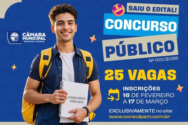 Edital prevê cargos de níveis médio, técnico, superior e carreira jurídica; provas ocorrem em maio A Câmara Municipal de Senador Canedo publicou nesta sexta-feira (16/01)