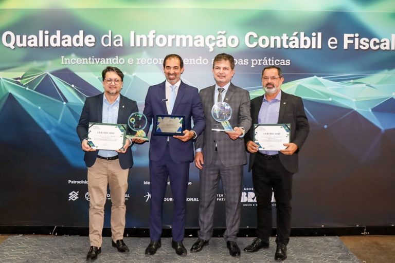 Município foi reconhecido nas categorias Nacional e Regional do III Prêmio Qualidade da Informação Contábil e Fiscal; prefeito Fernando Pellozo e secretário de Finanças Alessandro