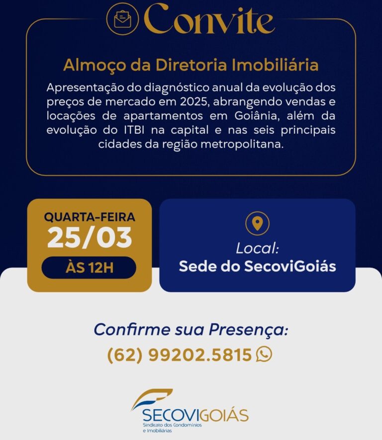 O Secovi Goiás (Sindicato das Imobiliárias e Condomínios) apresenta na próxima quarta-feira (25 de março) um estudo completo de revenda e aluguel de imóveis que