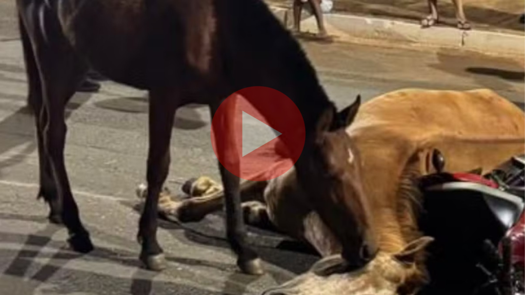 Vídeo: Cavalo filhote tenta reanimar égua morta após atropelamento em Goiânia e cena viraliza
