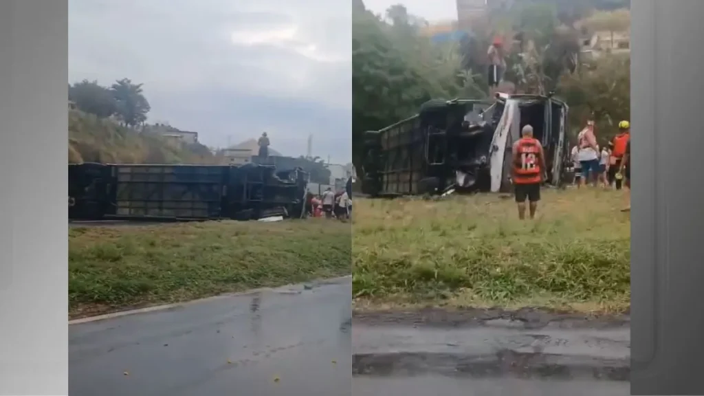 Ônibus com torcedores do Flamengo tomba na Dutra a caminho da Argentina