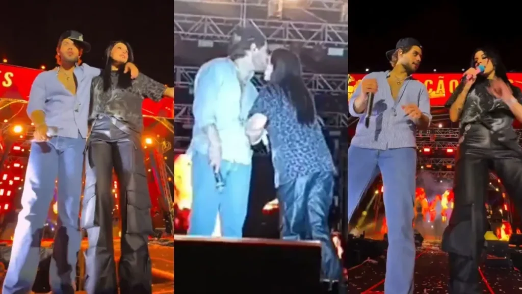 Carinho entre Ana Castela e Zé Felipe marca apresentação em Aparecida de Goiânia