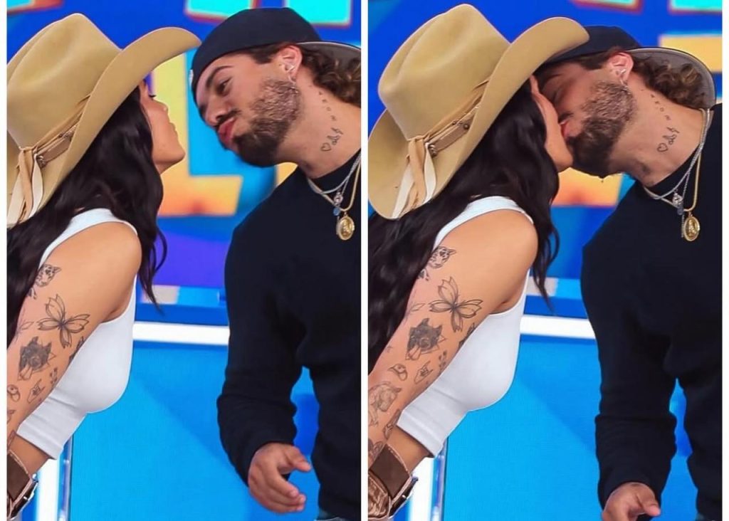 Ana Castela e Zé Felipe protagonizam primeiro beijo público durante gravação de programa